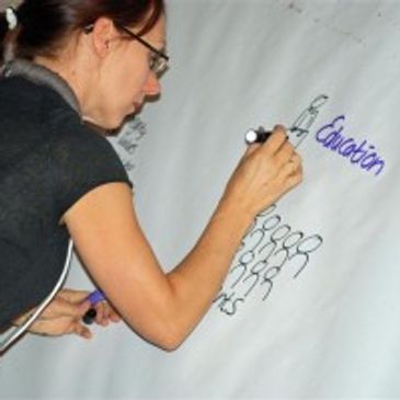 We blend concepts and methods from information design, visual thinking, critical analysis, graphic recording, plain language, user experience design, systems thinking, design thinking, community engagement processes, visual coaching, strategic visioning, and instructional design.